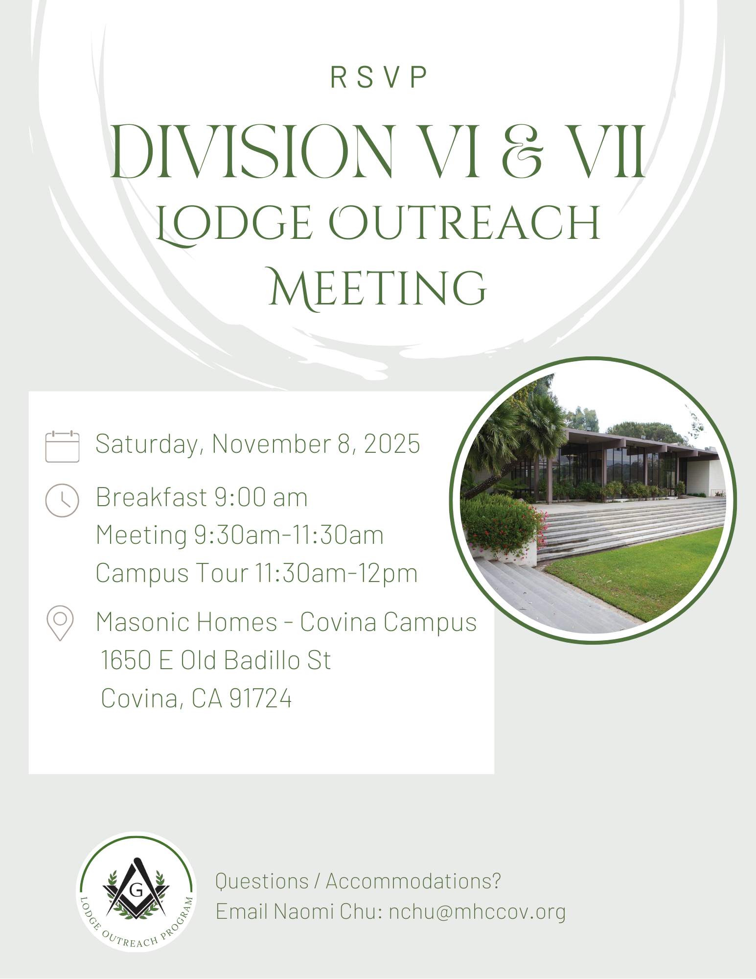 The meeting will be hosted by Masonic Homes – Covina Campus on November 8th. (We will be offering campus tours 11:30am-12pm following the meeting! )