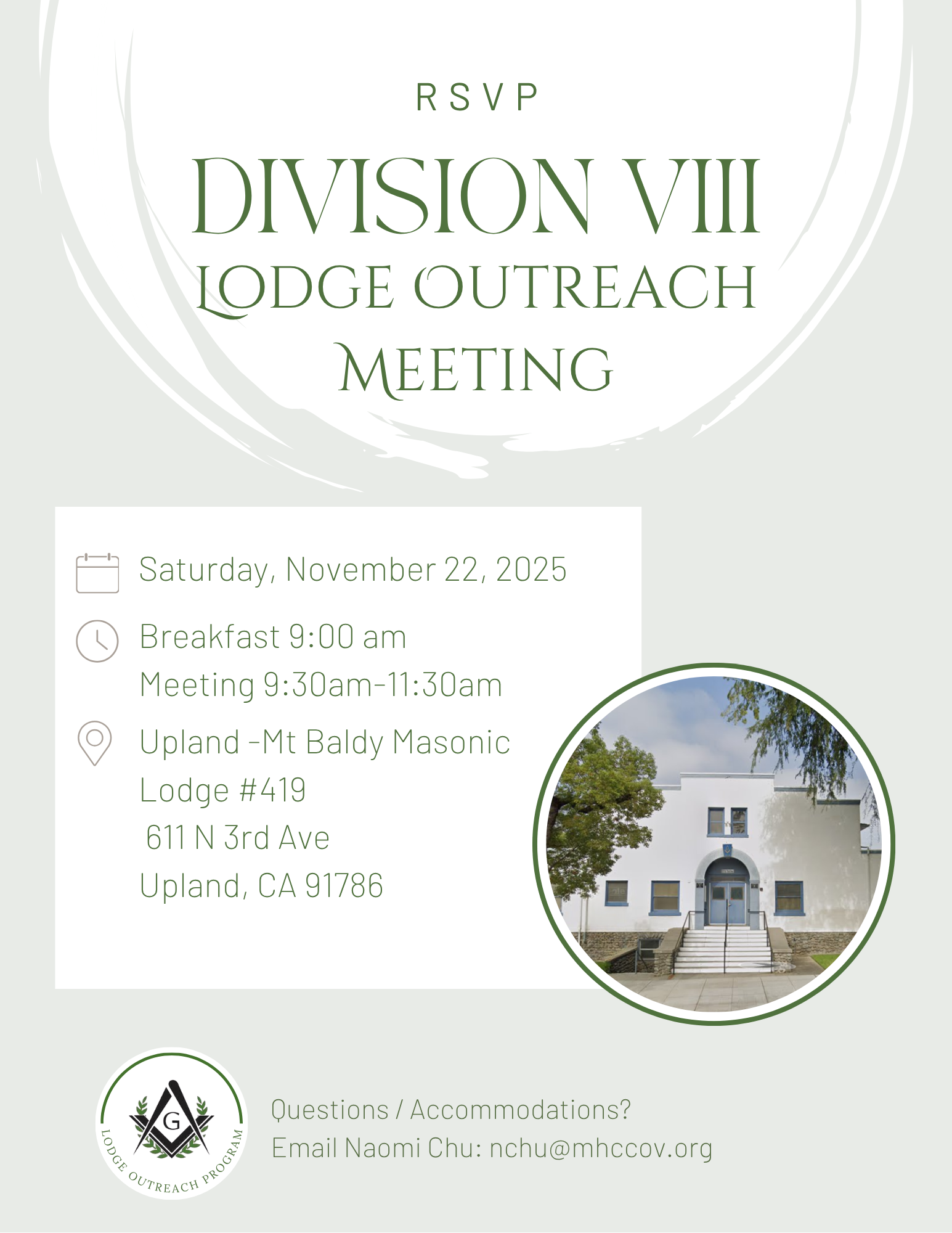 Join us for our next Division VIII Lodge Outreach Meeting and Training on Reconnection: Reaching out to Absent Brothers & Widowed Spouses. This training will focus on practical ways to reach out with purpose and care. We’ll learn how to rebuild bonds, generate trust, and renew commitment to absent brothers and widowed spouses. Let’s strengthen our outreach and make every connection count.