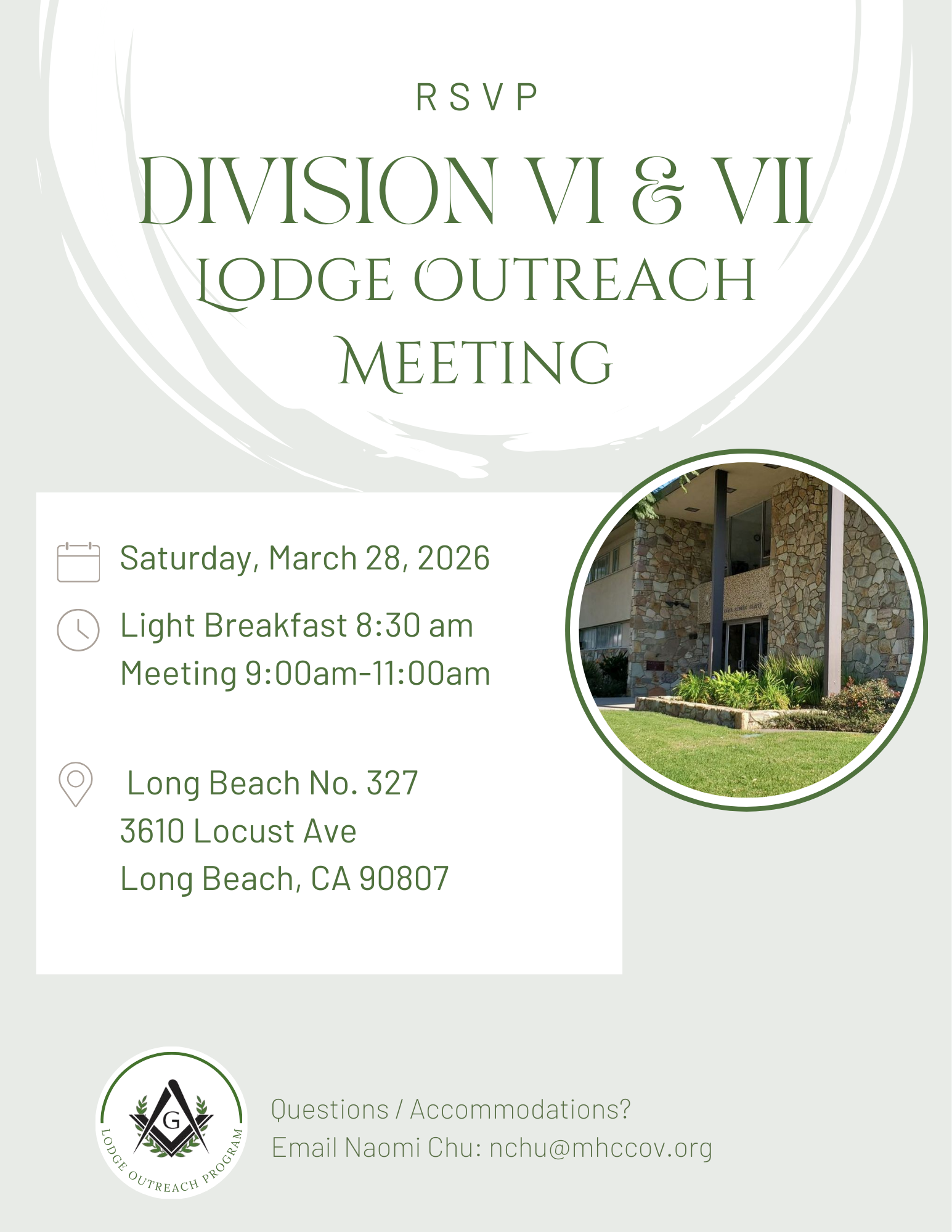 We are looking forward to our next in-person Division 6 and 7 Lodge Outreach Meeting.