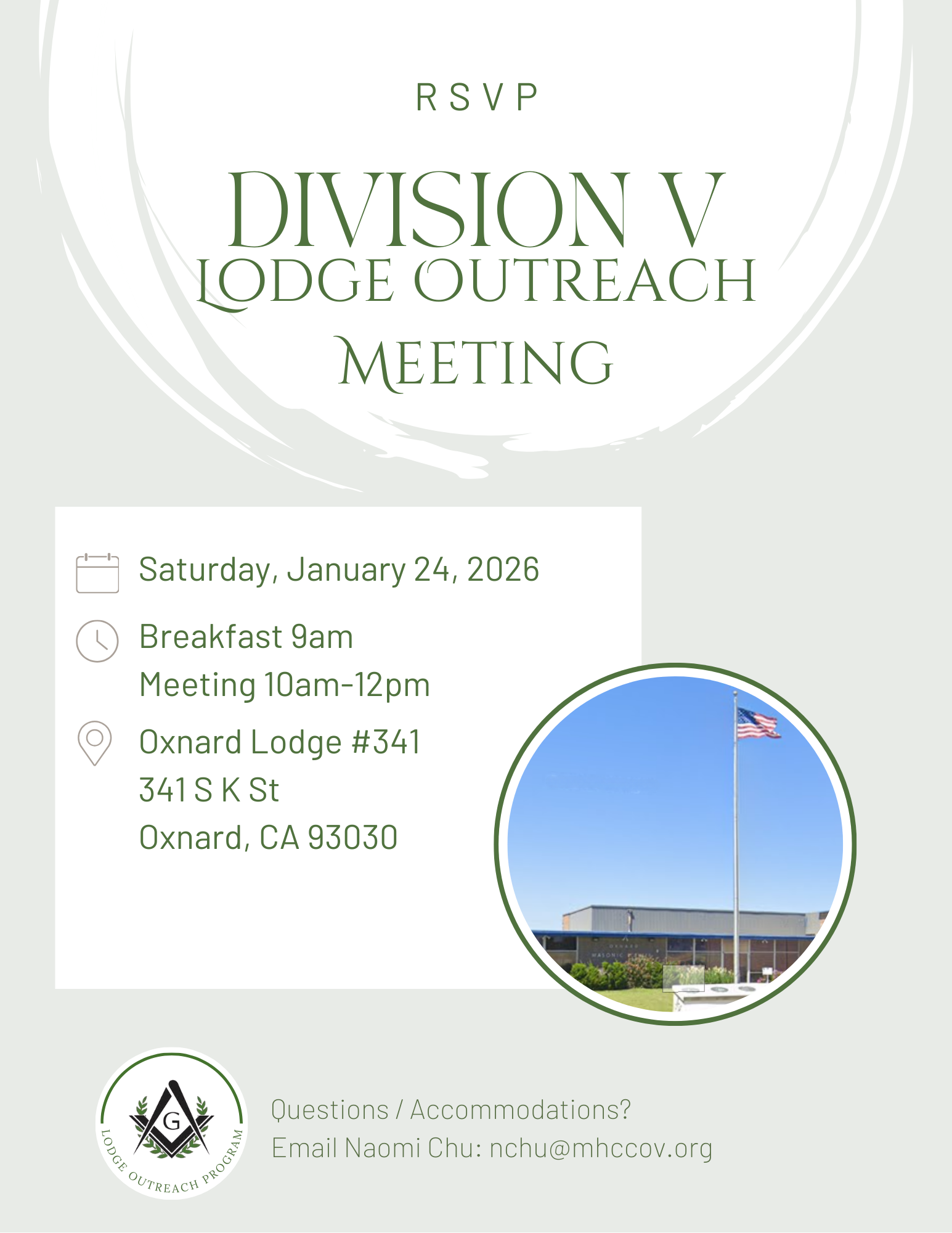 A gentle reminder to RSVP for our next Division V Lodge Outreach Meeting and Training!